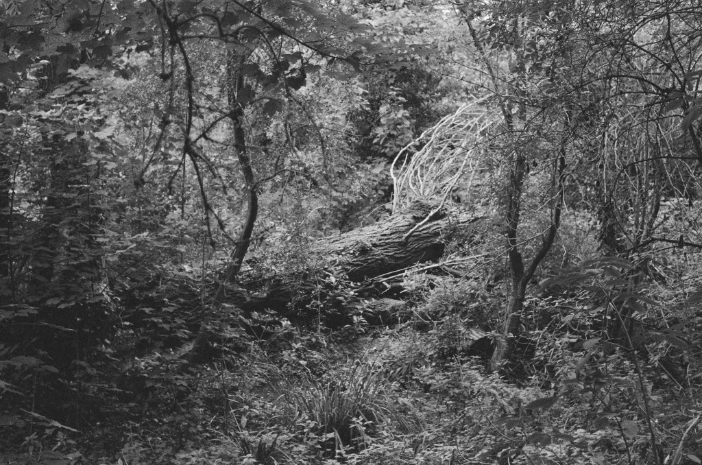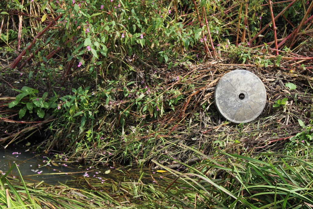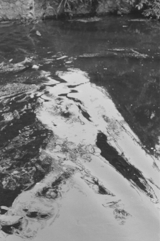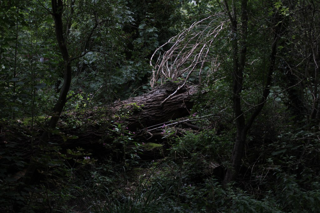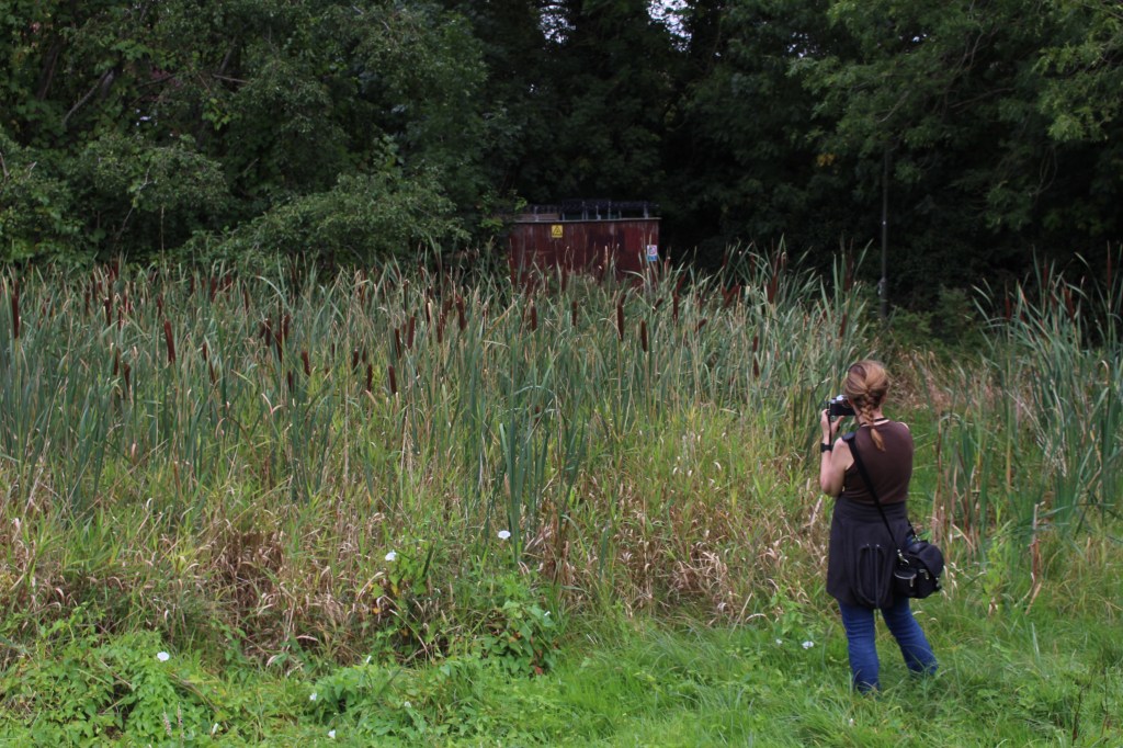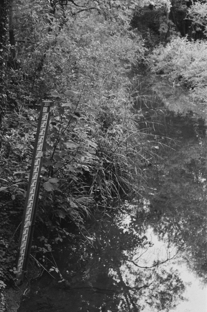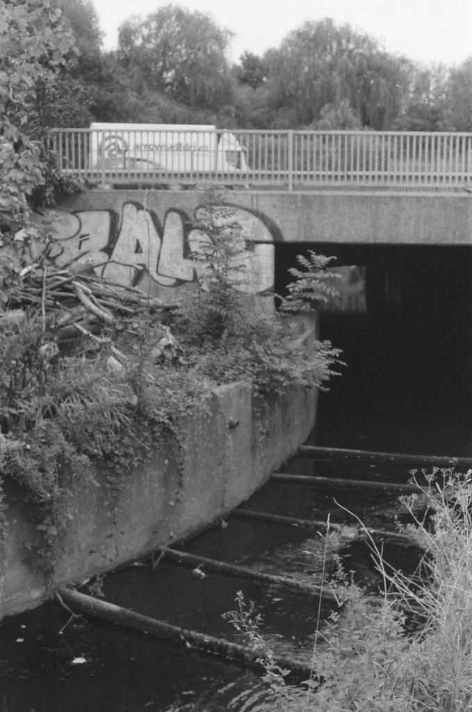 Finding the river again is like arriving in the ‘Zone’ in Stalker – not least in the industrial ‘zone’ that you have to pass through to get there, the huge concrete tanks and filter beds of the Hogsmill Sewage Treatment Works – and at first I thought I was lost as I wandered past garage doors, a discarded shopping trolley, and what appeared to be some sort of shrine, and it was only the sudden appearance of two children that alerted me to the presence of a path, and the sudden transportation into what seemed like another green world.