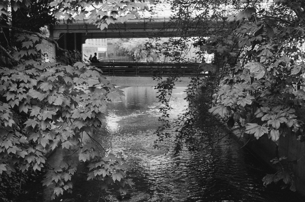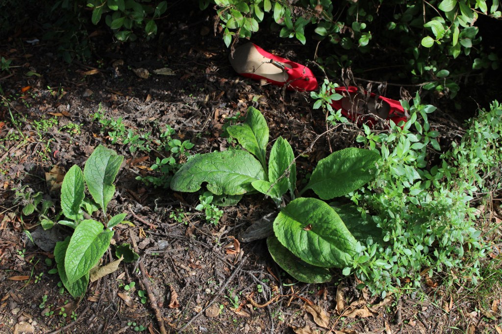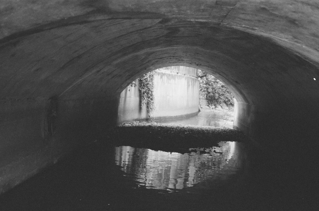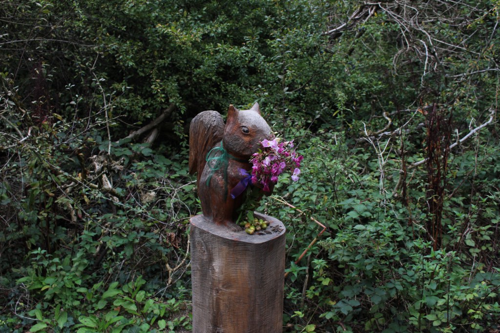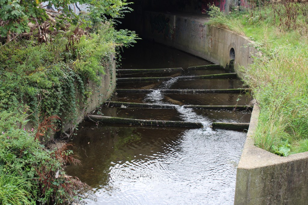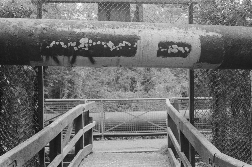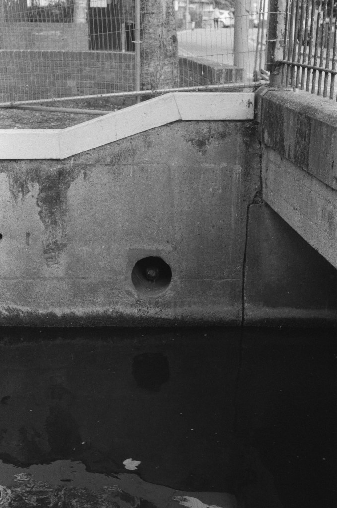 Finding the river again is like arriving in the ‘Zone’ in Stalker – not least in the industrial ‘zone’ that you have to pass through to get there, the huge concrete tanks and filter beds of the Hogsmill Sewage Treatment Works – and at first I thought I was lost as I wandered past garage doors, a discarded shopping trolley, and what appeared to be some sort of shrine, and it was only the sudden appearance of two children that alerted me to the presence of a path, and the sudden transportation into what seemed like another green world.