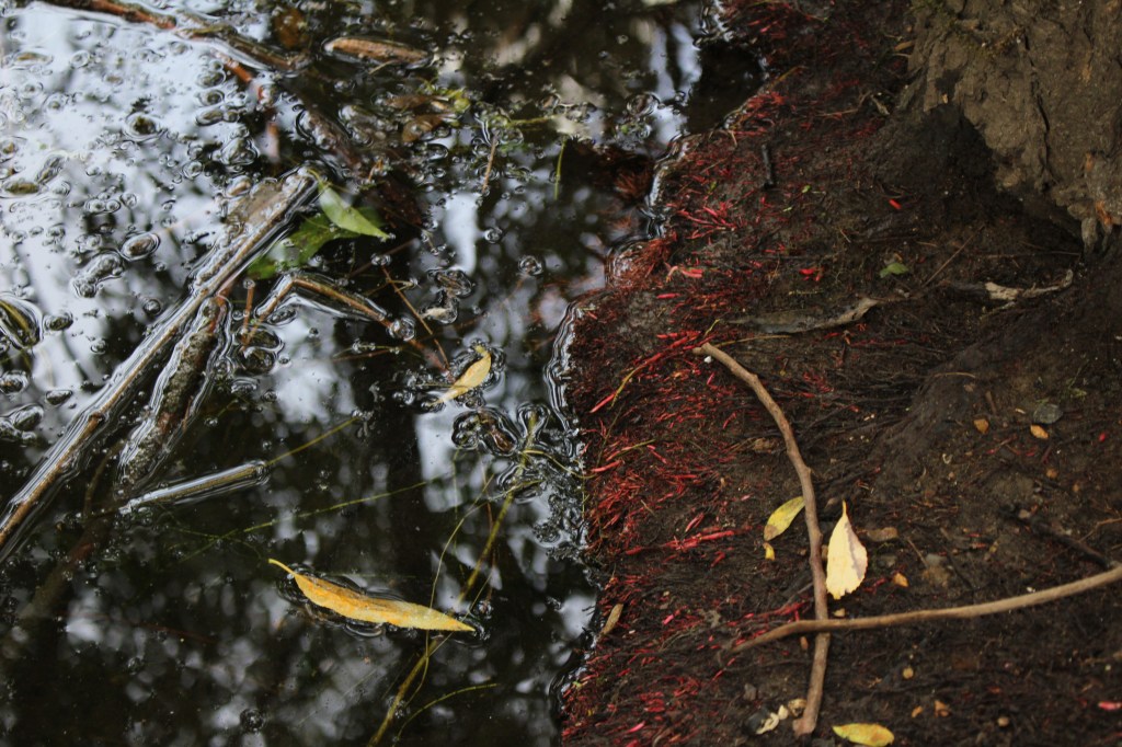 I knelt by the bank of the Hogsmill and I was surprised to find flecks of what looked like the red weed which had choked the streams, the Mole and the Wandle, and I wondered if we had not been visited after all.