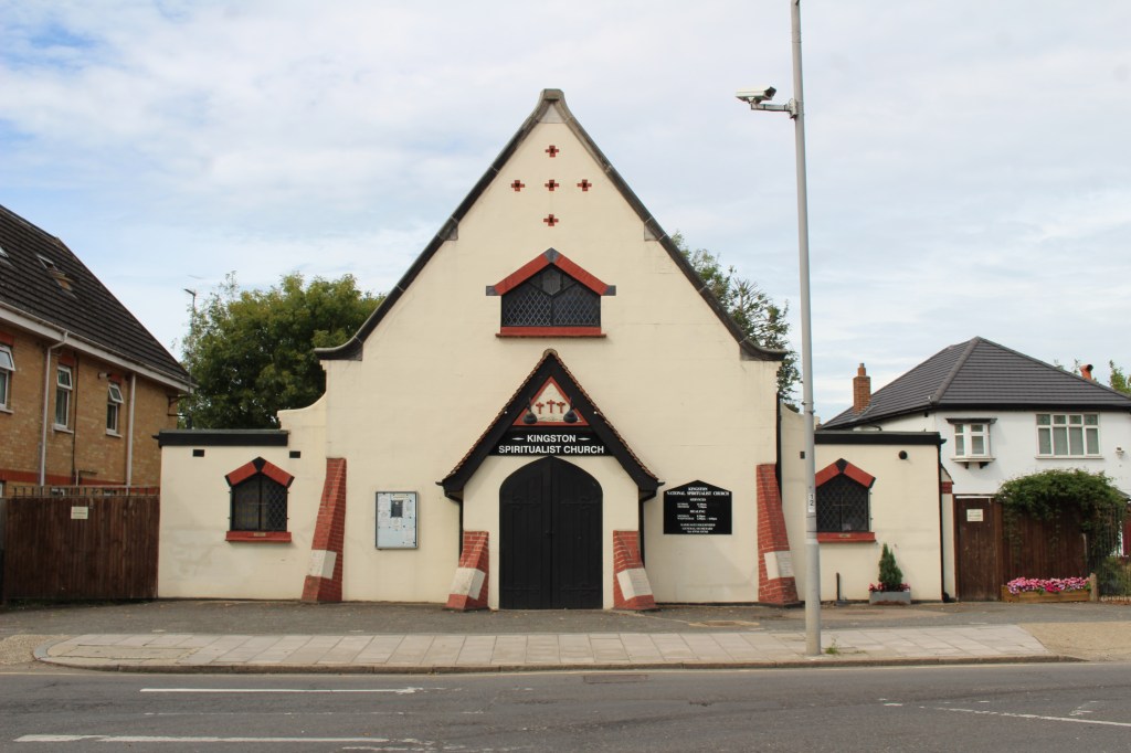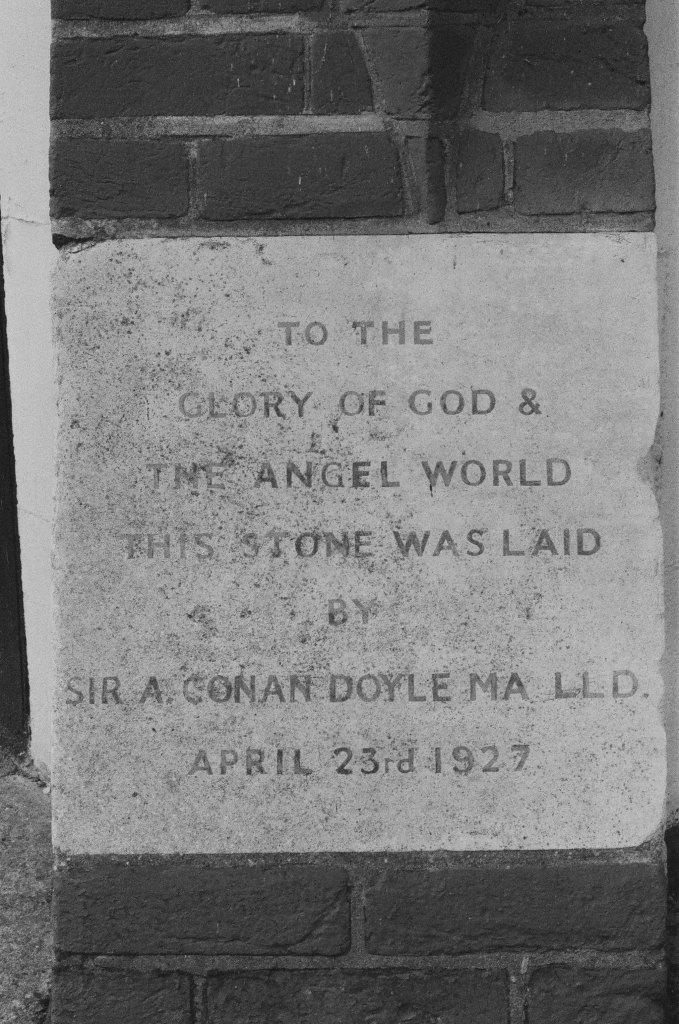 The river then passes a spiritualist church – which I have never seen open its doors – built in 1927, with a foundation stone laid by Sir Arthur Conan Doyle, who had himself written a dystopian fiction in the form of The Poison Belt, in which the earth passes through a belt of poisonous gas in space, the last Professor Challenger story before his writings became influenced by his Spiritualist beliefs after the death of his son, brother and two nephews in First World War.