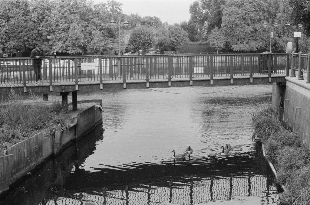 As I left Kingston, walking upstream, following the faint metallic smell, I passed the School of Art at what is the widest point of the river, near the Swan Public House – which had since been converted into the ‘Centre for Useless Splendour’ – where clouds of gnats swarm in the summer.