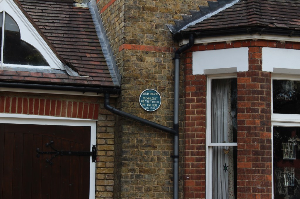 A blue plaque on a house near here informed me that a fellow time-traveller ‘Darian Mosspin […] will live here 2167-1904’.