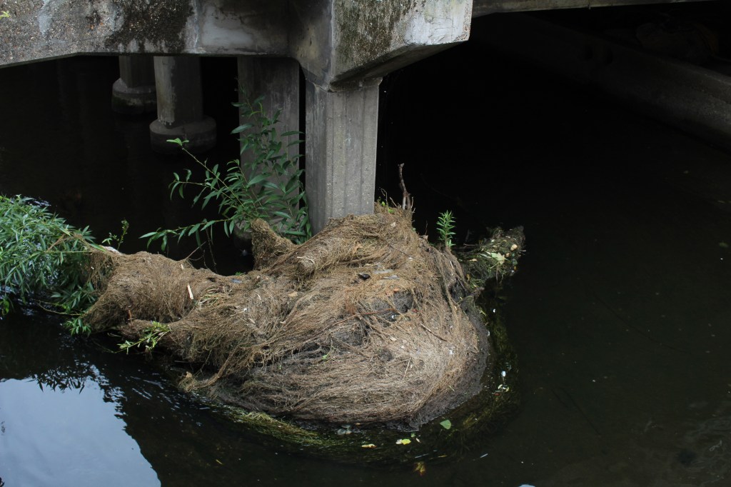 I did not discover Ophelia, but I was surprised to find a discarded tyre where she was supposed to have drowned, that had died a similar muddy death, as well as other pieces of office furniture further upstream which revealed it to be favourite location for fly-tipping, and as I left the meadow and crossed the bridge to Old Malden there was a hastily erected fence and a sign which read ‘For Sale’, and I dwelt upon the desolation of the scene.