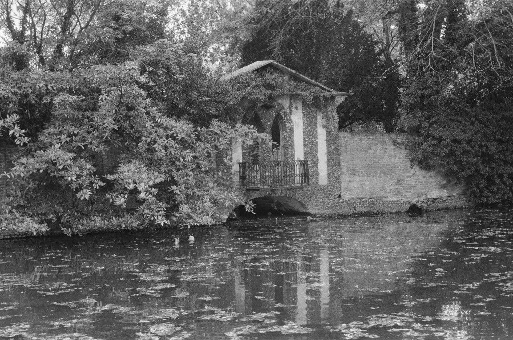 The Library and Social Centre was opened to the public in 1970, and looks like a flying saucer that has landed in the middle of the park, and indeed in its listing it is praised for its ‘striking design, notable for its space-age flair and the generous, top-lit principal interior space’. There is a fountain in the middle of the lake which is fed by the spring and, as Hunt says, gave the ‘public appearance of the newly-born stream, the true fons being on the left side of the road hidden by a garden wall’. The Hogsmill in fact rises from several springs in the North Downs which filter through the chalk until it reaches London clay at Ewell where it is forced to the surface. There are estimated to be around 210 chalk streams in the world and 160 of them are in Britain. They percolate through the chalk downs of southern England, the Chilterns, and the Yorkshire and Lincolnshire Wolds; permeable ‘aquifers’, which produce streams of ‘gin-clear’, alkaline, mineral-rich water of stable, constant flow and temperature, and provide a rare and unique habitat for a variety of animal, plant and insect species, including the trout and salmon which make them popular among anglers and fly fishermen, three of which grace the Kingston coat of arms that represent three fisheries in the Domesday Book. Few of them are protected, however, and most of them, like all of England’s rivers, have failed to meet their required ecological standards, and struggle to meet the demands of a growing population.